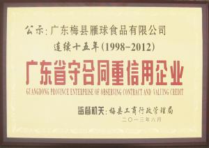 本公司生產的雁球牌米排粉,采用優質大米、高山天然山泉水,經科學配制,嚴格的衛生條件里精制而成。該產品有營養豐富,口感滑爽,食用方便,能蒸、能泡、能炒等特點,既能做成各種花式的美餐,同時還便于保存,久不變質。該產品除滿足梅州地區外,還遠銷廣州、深圳、江西、福建等地,特別是海外華同胞品嘗了雁球牌米排粉后,更是交口稱贊。雁球牌米排粉在2001年被國家產品質量保障中心和國家名優產品認定中心授予“中國名優產品”,2002年被國家中輕產品質量保障中心授予“消費者滿意產品證書”。同時公司早在1999年就被國家農業部授予“全面質量管理達標證書”。公司連續多年被市、縣評為文明單位,2003年被梅州市政府授予連續五年“重合同守信用企業”。